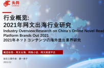 行业概览:2021年网文出海行业研究摘要:目前中国网文出海市场已覆盖亚洲、东南亚、欧美和非洲等主要地区,拥有近千万的读者用户具体来看,中国网文出海路径可大致分为两个阶段。第一阶段,随着东南亚市场对网中文学需求的持续增长,中国网络文学开始在日、 ...
