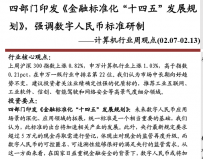 四部门印发《金融标准化“十四五”发展规划》,强调数...摘要:四部门印发《金融标准化“十四五”发展规划》,强调数字人民币标准研制